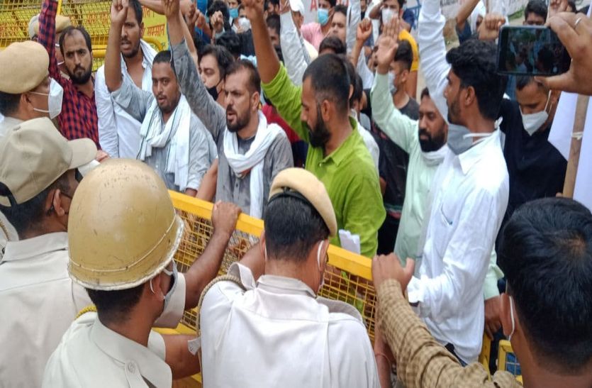 पुलिस के साथ धक्का मुक्की, बस में बिठाकर छोड़ा कलेक्ट्रेट