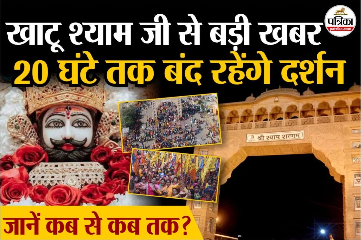 khatu shyam ji: खाटूश्यामजी के भक्तों के लिए बड़ी खबर है। राजस्थान के प्रसिद्ध खाटूश्यामजी मंदिर में 12 अक्टूबर की रात 10 बजे से लेकर 13 अक्टूबर की शाम 6 बजे तक मंदिर के पट बंद रहेंगे। यानी इस 20 घंटे के दौरान भक्तों को बाबा श्याम के दर्शन करने का अवसर नहीं मिलेगा।