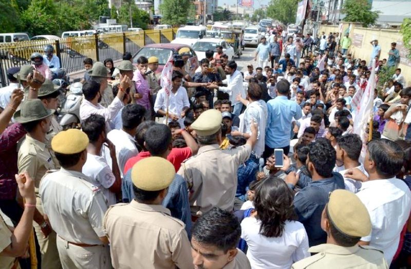 Rajasthan Student Union Election 2019 : राजस्थान छात्रसंघ चुनाव 2019 में बुधवार को मतों की गणना जारी है। इसी बीच सीकर के राजकीय कन्या महाविद्यालय में एक दो वोटों को लेकर विवाद खड़ा हो गया। जिसकी सूचना मिलते ही एसएफआई के सैकड़ों कार्यकर्ता इकठ्ठा होकर कॉलेज के बाहर पहुंचने लगे। इसी दौरान पुलिस ने उन्हें रोक दिया। जिसके बाद वह धरने पर बैठ गए। उन्होंने कॉलेज के प्राचार्य भूपेन्द्र दुल्लड़ पर चुनाव परिणाम में धांधली करने का आरोप लगाया है। उनका कहना है कि पहले एसएफआई ने अध्यक्ष पद पर छात्रा निरज महला को प्रत्याशी बनाया था।
