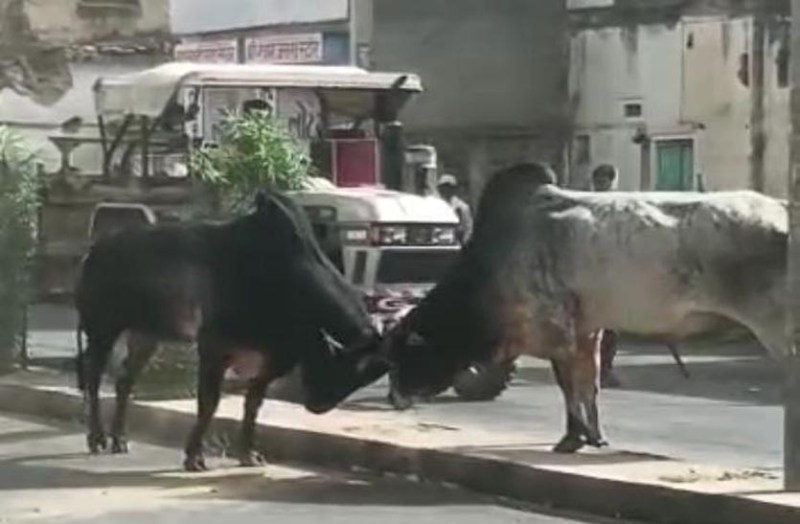 समस्या: शहर की सड़कों पर दिनभर झगड़ते रहते हैं आवारा पशु