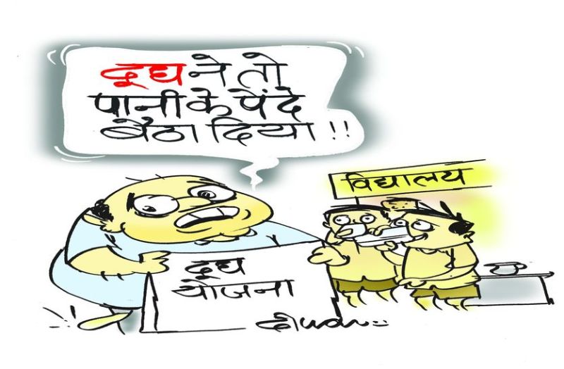 भाजपा सरकार के कार्य में कक्षा आठ तक के बच्चों को दूध पिलाने की योजना पिछले सत्र में शुरू हुई। योजना के तहत उच्च प्राथमिक स्कूलों के विद्यार्थियों को 200 ग्राम और प्राथमिक स्तर पर 150 ग्राम दूध मिलता है। लेकिन बजट के अभाव में अब योजना दिनों दिन स्कूलों के लिए गले की फांस बनती जा रही है।