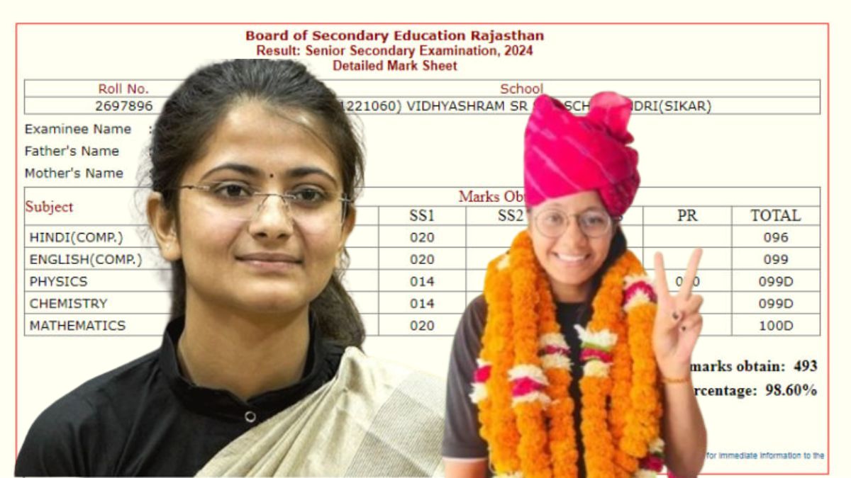 सीकर. राजस्थान की सीकर निवासी डिंपल ने आरबीएसई साइंस संकाय में 98.60% अंक प्राप्त कर पूरे गांव का नाम रौशन कर दिखाया। किसान परिवार से ताल्लुक रखने वाली डिंपल ने हिंदी में 100 में से 96 अंक, अंग्रेजी, फिजिक्स और कैमिस्ट्री में 99 और गणित में पूरे 100 अंक हासिल किए हैं। वे कहती हैं कि इस सफलता के पीछे उनके माता पिता का हाथ है। किसान परिवार से आने वाली डिंपल के पिता केशर देव ड्राइवर हैं और उनकी मां संतोष देवी गृहिणी है। डिंपल कहतीं हैं कि उनके माता-पिता और बड़ी बहन ने खूब सपोर्ट किया।