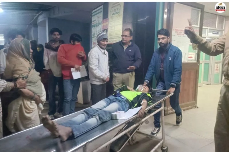 धुआं की चपेट में आने से अस्पताल में भर्ती युवक (फोटो-पत्रिका)