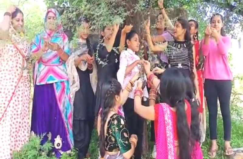 यूं तो चनों का झाड़ से तोड़ा जाता है लेकिन तीज पर गांव की महिलाएं उल्टे झाड़ों के कांटों पर भिगोए हुए चने लगाती नजर आई। दरअसल गांव में मान्यता है कि इस तरह चने लगाकर मनौती मांगने पर वह पूरी हो जाती है।