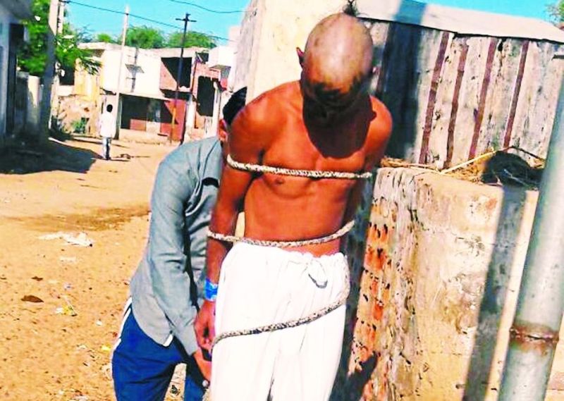 जानकारी के मुताबिक गांव के एक युवक (नाबालिग भी बताया जा रहा है ) ने खेत में जा रही नाबालिग बालिका से छेड़छाड़ की। बालिका ने परिजनों को इसकी जानकारी दी। परिजन व गांव के कुछ लोग युवक को पकडकऱ गांव में पशु चिकित्सालय के पास स्थित चौक में लाए और उसके साथ जमकर मारपीट की। इसके बाद उसे वहीं पर एक बिजली के खंभे से बांध दिया।