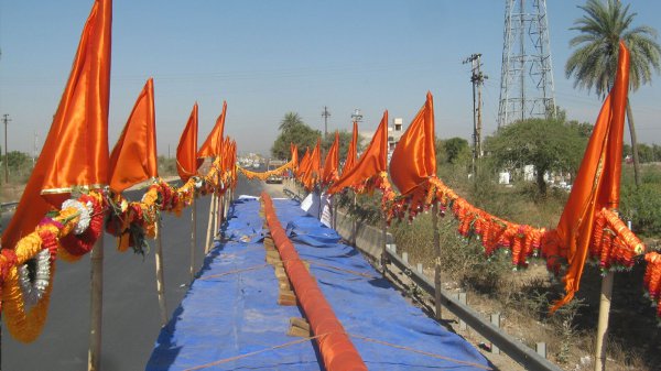 इसके निर्माण में 21 किलो गाय का गोबर, 500 लीटर गौमूत्र, 180 लीटर दही, 520 ग्राम गूगल, 500 किलो खोपरा बूरा, और अन्य सामग्री इस्तेमाल की गई है, बांस पर यह लेप लगाया गया है। इसका वजन करीब 4 हजार किलोग्राम है। इसीक लागत दो लाख 95 हजार 320 रुपए बताई गई है।