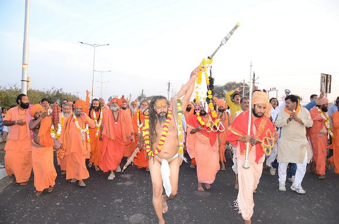 अखाड़ों की परंपरा शुरू करने वाला प्रथम अखाड़ा श्री पंच दशनाम आवाहन अखाड़े (सरकार अखाड़ा) का रमता पंच ने रविवार शाम मक्सी रोड से नगर में प्रवेश किया। अखाड़े के महामंत्री श्रीमहंत सत्यगिरि महाराज पंच को लेकर सांची दुग्ध संघ पहुंचे। यहां से पंच का कारवां रात 8 बजे नीलगंगा स्थित पड़ाव स्थल में प्रवेश किया। पड़ाव स्थल पर रमतापंच के श्रीमहंत कैलाशपुरी महाराज ने निशान भाला गणेश प्रकाश की स्थापना की। इसके बाद श्रीमहंत ने रमतापंच के श्रीमहंत भोलागिरिजी, श्रीमहंत अवधेशानंद सरस्वती जी, श्रीमहंत इंद्रगिरि जी, सचिव श्रीमहंत रघुवीरपुरीजी, श्रीमहंत रामगिरिजी, श्रीमहंत जय विजयभारती, श्रीमहंत राजेंद्रगिरिजी, अष्टकौशल महंत कर्नाटक पुरि महाराज, अष्टकौशल महंत शंकरपुरिजी, कारोबारी राहुलगिरि जी सहित थानापती, कोठारी आदि का पुष्प माला पहनाकर स्वागत किया। श्रीमहंत सत्यगिरि महाराज ने बताया 10 अप्रैल को चैत्र शुक्ल तृतीया के दिन पंच शाही पेशवाई के साथ अखाड़ा छावनी में प्रवेश करेगा। इसके पूर्व 6 मार्च को छावनी स्थल पर धर्मध्वजा का पूजन होगा।