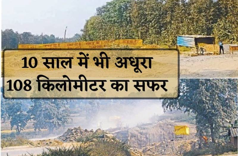सिंगरौली. जहां आज के समय में दो-चार साल में ही सैंकड़ों किलोमीटर सड़क बनकर तैयार हो जाती है, वहीं मध्यप्रदेश में एक ऐसा भी स्थान है, जहां महज 108 किलोमीटर की सड़क को 10 साल में भी पूरा नहीं किया जा सका, ऐसे में लोगों को हर दिन परेशानी का सामना करना पड़ रहा है।