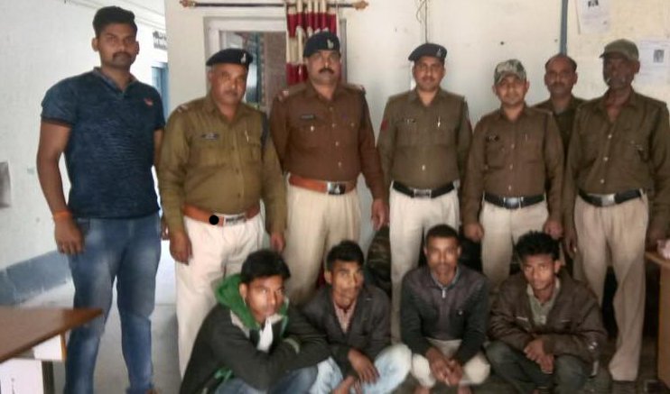 डकैती की योजना बनाते पकड़े गये आरोपियों में अहमद रजा (२२) उर्फ दादू पिता मोहम्मद सरीफ निवासी साकिन हर्रा चंदेल, सब्बीर अली (२१) उर्फ बाबा पिता मोहम्मद मुस्तफा निवासी हर्रा चंदेल, अब्बास (२१) उर्फ छोटकू पिता मुबारक मुसलमान निवासी हर्रा चंदेल, मोहम्मद रब्बानी (२०) पिता मोहम्मद मुल्फान निवासी खोभा को पुलिस ने मौके पर घेराबंदी कर गिरफ्तार कर लिया।
