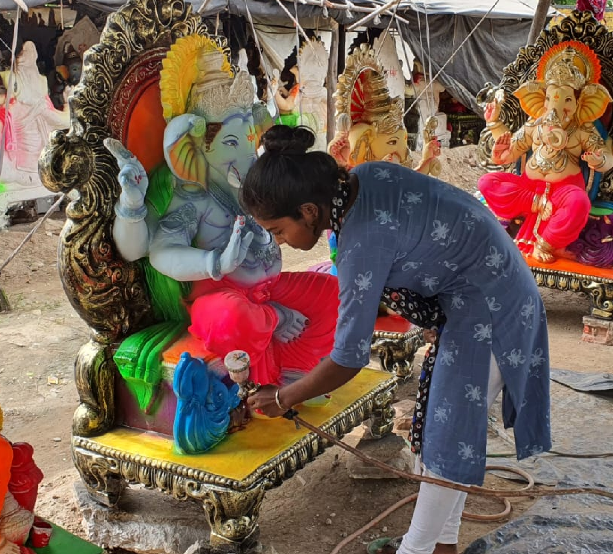 अरविंद पॅवेलियन के बाहर मूर्तियों का व्यापार करने वाली मूर्तिकार युवती ने बताया कि इस बार सबसे बड़ी मूर्तियां चार फीट तक की बनाई हैं, पर ज्यादातर ग्राहक बड़ी मूर्तियों की मांग कर रहे हैं। एक फीट की मूर्ति 100 रुपए में तथा चार फीट की 7 हजार रुपए में बिक रही है।