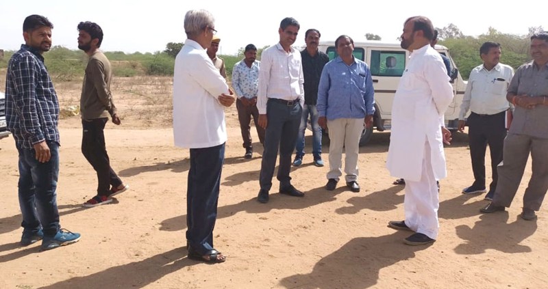 शिवगंज. जिला अस्पताल व कन्या महाविद्यालय के लिए प्रस्तावित भूमि का मौका मुआयना करते विधायक व मौजूद अन्य।