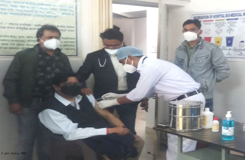 आबूरोड के शहरी पीएचसी में वैैक्सीन लगवाते स्वास्थ्य केंद्र प्रभारी डॉ. विक्रांत सक्सेना।