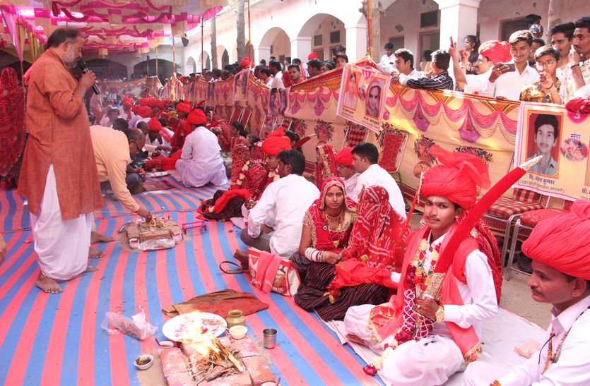 समिति अध्यक्ष किशन प्रजापतने बताया कि सुबह बाराती डीजे की धुन पर नाचते विवाह स्थल पहुंचे। इसके बाद तोरण की रस्म अदा की गई। दोपहर 12.53 से 2.23 बजे के मध्य अग्नि को साक्षी मानकर एक साथ 13 जोड़े हमसफर बने। पंडितों ने शुभ मुहूर्त पर विधि-विधान के साथ विवाह की रस्म अदा करवाई।