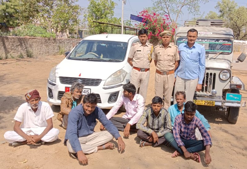 पुलिस ने रानीवाड़ा अदेपुरा हाल सिलदर निवासी अर्जुन कुमार पुत्र दलाराम माली, रानीवाड़ा अदेपुरा निवासी सुरेश कुमार पुत्र दलाराम माली, भीनमाल हाल सिलदर निवासी उदाराम पुत्र प्रतापराम माली, रानीवाड़ा अदेपुरा हाल सिलदर निवासी दलाराम पुत्र गीगाराम माली, रेवदर कराजिया निवासी जोगाराम पुत्र भीखाराम गरासिया, आबूरोड निचलागढ़ निवासी सवाराम पुत्र सूरमाराम गरासिया, रेवदर कराजिया निवासी गुलाराम पुत्र गलबाराम गरासिया को गिरफ्तार किया। सातों को न्यायालय में पेश किया, जहां से सभी को जेल भेजा गया।