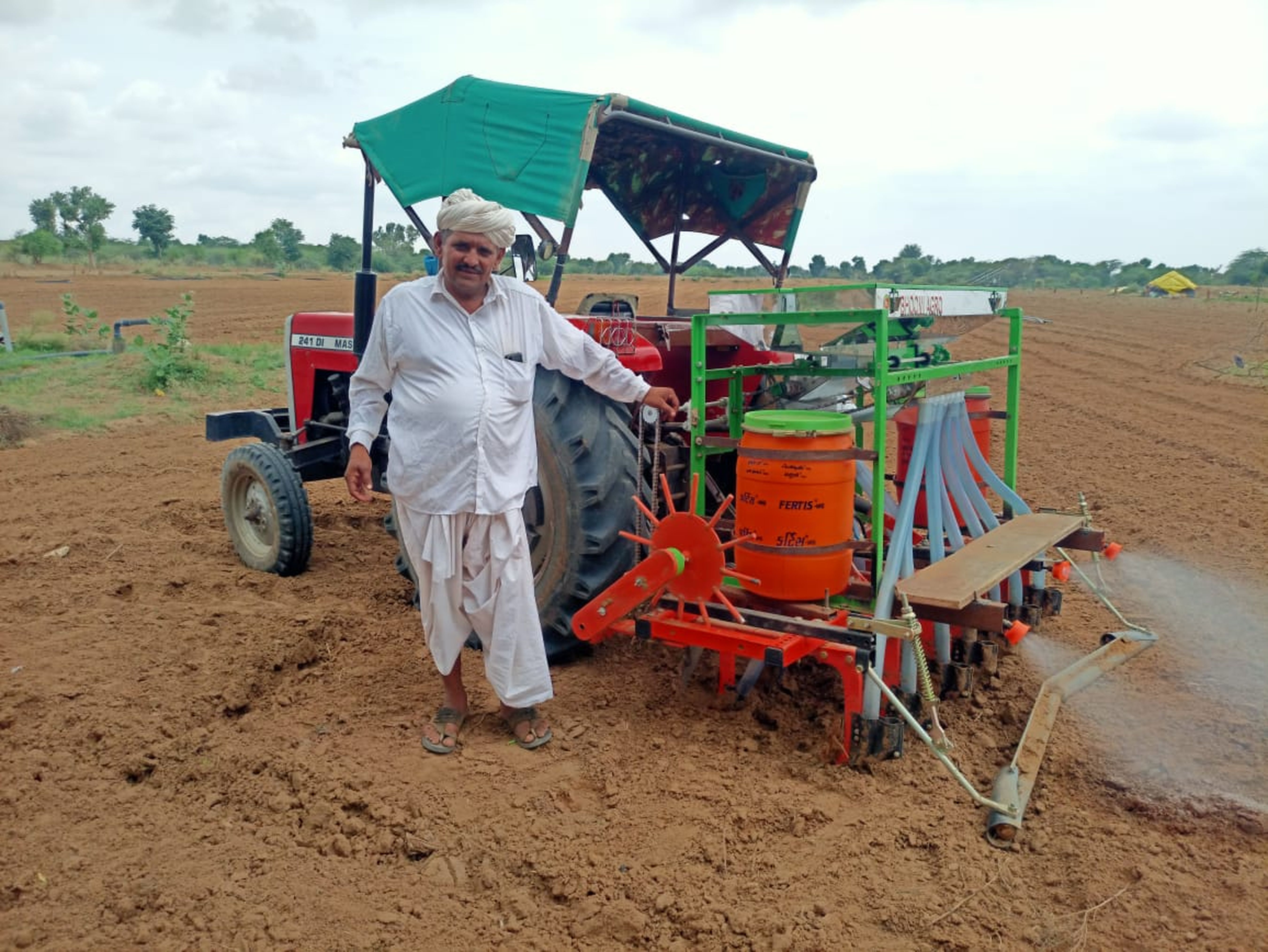 मंडार. काश्तकार ओबाराम कलबी खेती में नवाचार कर कृषि उपकरणों के मामले में बन रहे आत्मनिर्भर।