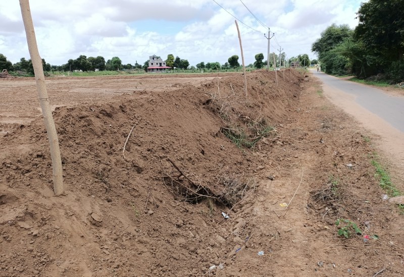 खेतों की ऊंची मेडबंदी से हो रहा है बरसाती पानी का भराव, डामर सड़क टूटने का खतरा बढ़ा