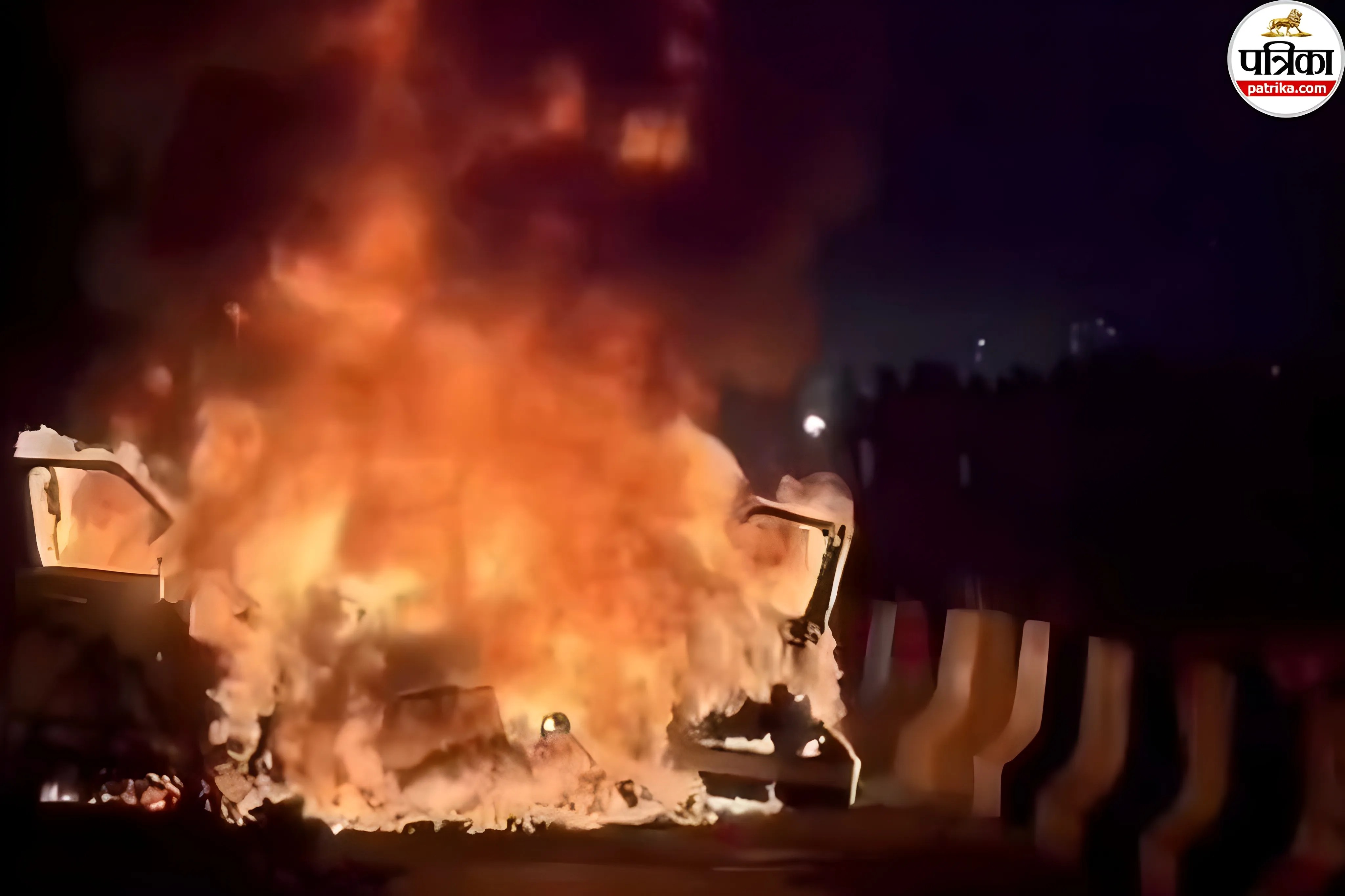 MP Lumbharam Chaudhary Car Fire Incident (Patrika Photo)