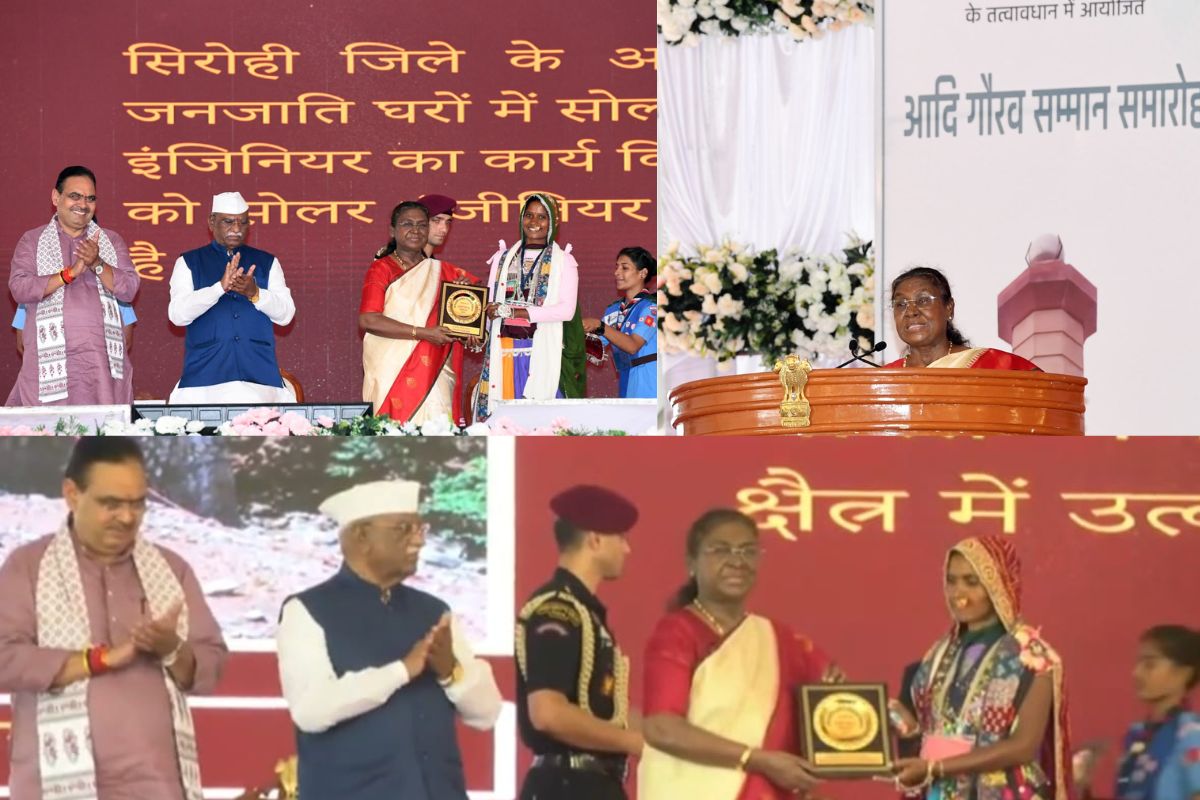Sirohi News: आबूरोड। बांसवाड़ा जिले में आदिवासियों के पवित्र धाम मानगढ़ में शुक्रवार को आयोजित आदि गौरव सम्मान समारोह में राष्ट्रपति द्रौपदी मुर्मु ने सामाजिक बदलाव की वाहक सरपंच रेखा कुमारी व सोलर इंजीनियर थावरी बाई को उनकी अनुकरणीय सेवाओं व योगदान के लिए सम्मानित किया।