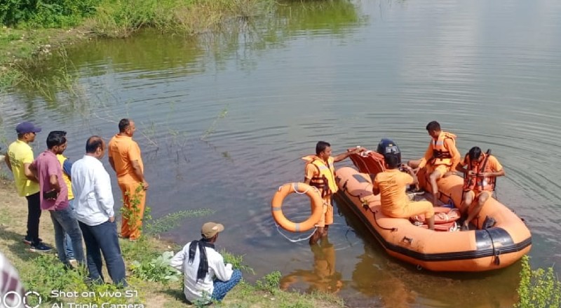 सरूपगंज. मुनिया बांध पर मासूम को ढूंढते एसडीआरएफ की टीम।