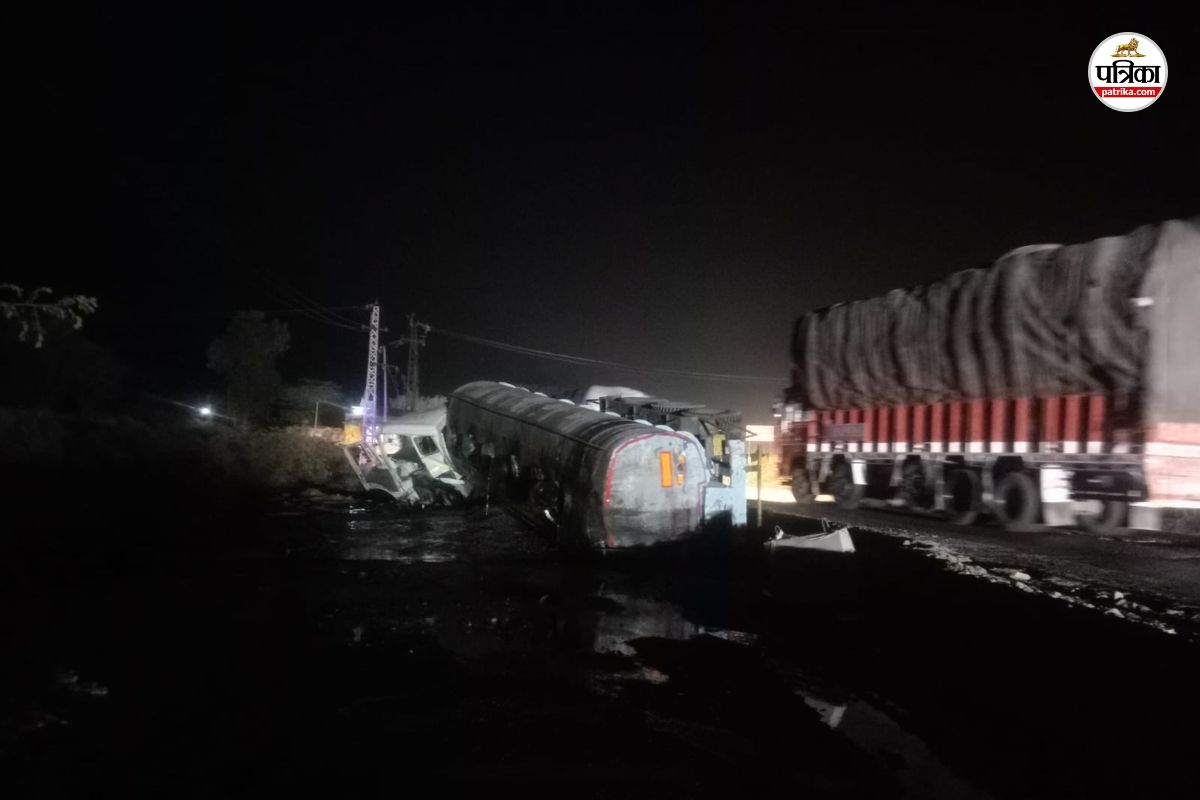 हाईवे किनारे पलटा टैंकर। फोटो: पत्रिका