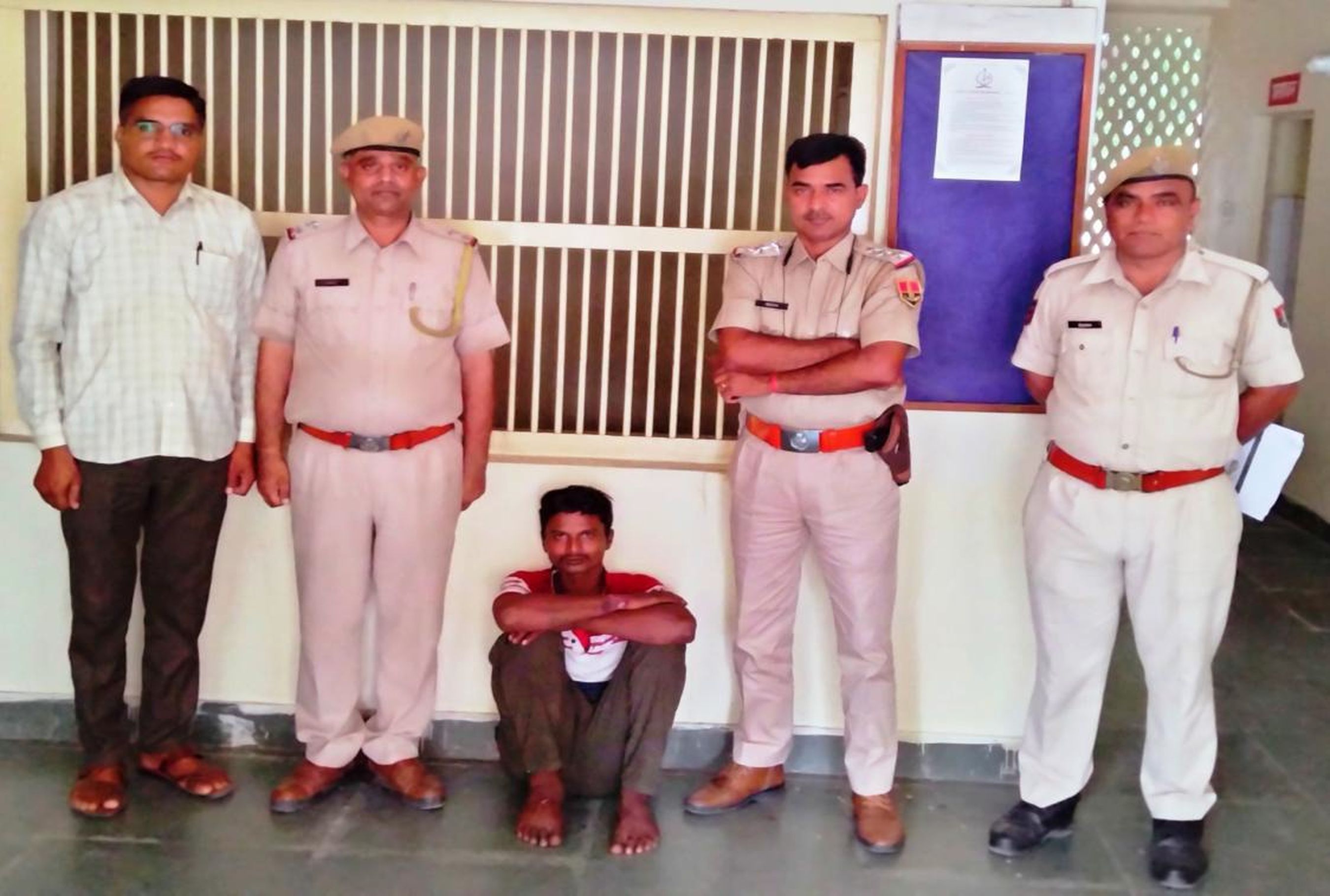 सिरोही. गिरफ्तार आरोपी व मौजूद पुलिस।