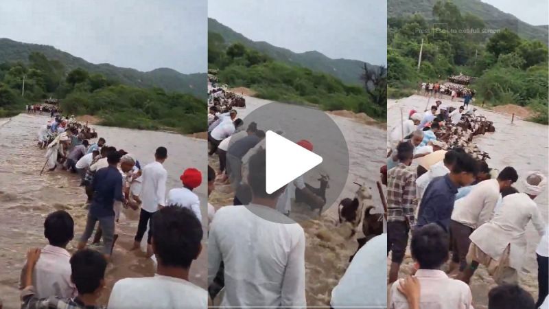 दरअसल सिरोही जिले में स्थित मीरपुर नदी के तेज बहाव से बड़ी संख्या में बकरियों को बचाने का जिम्मा ग्रामीणों ने उठाया। सैंकड़ों बकरियों के झुंड को बचाने के लिए तेज बहाव वाली नदी में देवासी समाज के लोग लाइन से खड़े हो गए। फिर बकरियों को नदी पार करवाया। ऐसे में सारी बकरियां सुरक्षित बच गईं। बेजुबान जानवरों के प्रति इतना प्यार और इंसानियत देखकर लोगों ने भी वीडियो पर खूब प्यार बरसाएं। ऐसे में राजस्थान के सिरोही जिले ने एक खास मिसाल पेश की है।