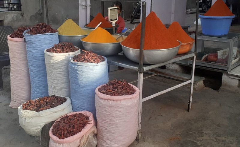 शिवगंज. शहर में मसालों की एक दुकान के बाहर खुले में पड़े मसाले।