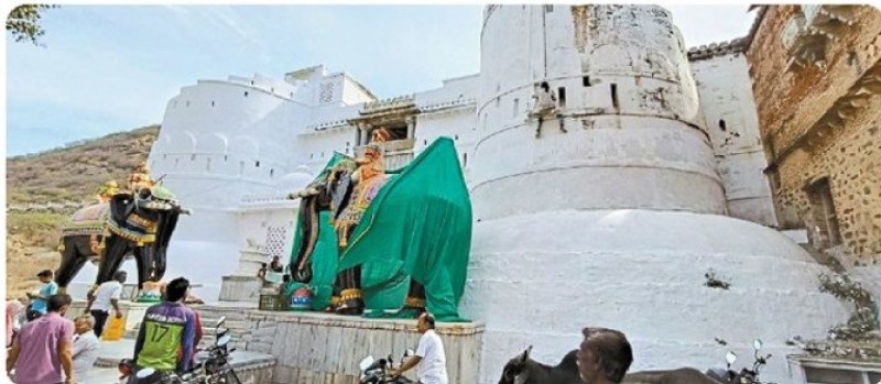 सिरोही. शिवरात्रि को लेकर सारणेश्वर महादेव मंदिर में रंग-रोगन करते कारीगर। पत्रिका