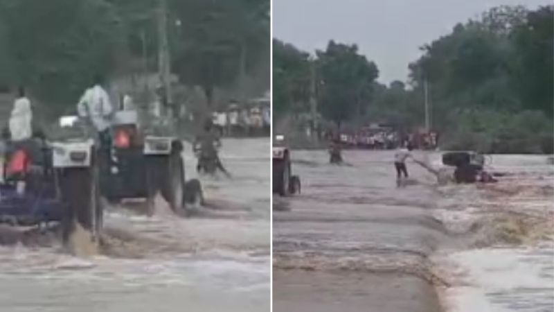 राजस्थान के सिरोही जिले से एक वीडियो सोशल मीडिया पर वायरल है। जहां नदी की तेज धार के बीच पार करता हुए एक ट्रैक्टर तेज बहाव में बह गया। घटना बरलूट थाना क्षेत्र के गोल गांव में नदी के पास की है। गनीमत यह रही कि ट्रैक्टर चालक और उसका साथी अपनी जान बचाने में सफल रहे।