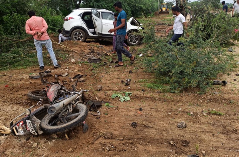 थाना प्रभारी गनी मोहम्मद ने बताया कि कार चालक ने मोहब्बत नगर जाते समय तेज गति और लापरवाही से चलाते हुए गलत दिशा में जाकर सामने से आ रही बाइक को टक्कर मार दी। कार बाइक सवार विक्रम सिंह पुत्र लक्ष्मण सिंह राजपूत निवासी कालन्द्री उम्र 20 वर्ष एवं पीछे बैठी प्रकाश कंवर पत्नी पूरन सिंह उम्र 23 निवासी कालन्द्री को घसीटते हुए रोड से नीचे खड़े पेड़ से जा टकराई।