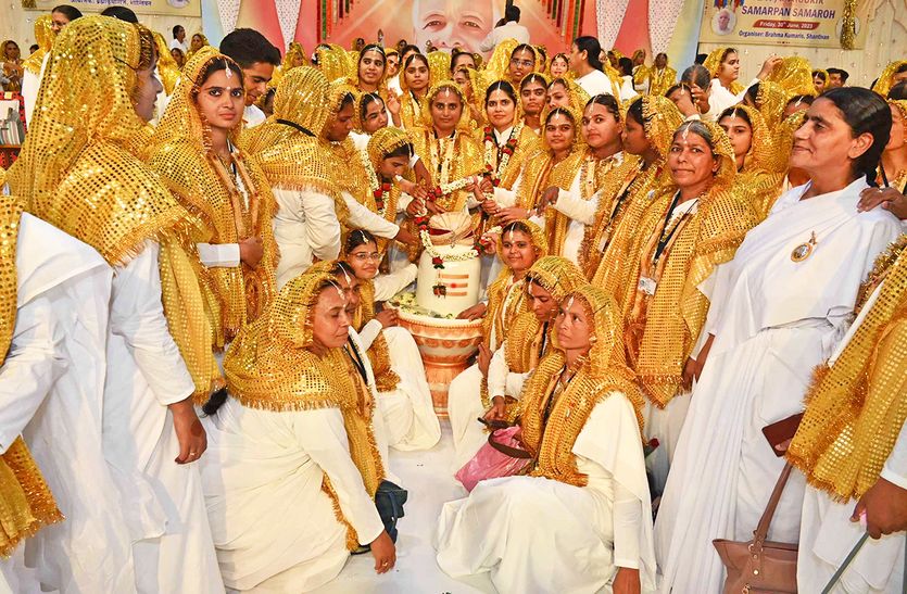 Unique marriage in Rajasthanसिरोही/आबूरोड. ब्रह्माकुमारी संस्थान के अंतरराष्ट्रीय मुख्यालय शांतिवन में आयोजित समर्पण समारोह में पहली बार एक साथ देशभर की 450 युवतियों का दिव्य विवाह हुआ। विवाह में 450 दुल्हनों ने परमात्मा शिव को दूल्हे के रूप में अपनाया। इन दुल्हनों में सीए, डॉक्टर, इंजीनियर, एमटेक, एमएससी, फैशन डिजाइनर, स्कूल शिक्षिका भी शामिल थीं।