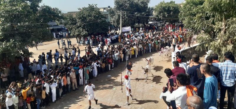 सरूपगंज. वासा गांव में गायों की दौड़ से भविष्य देखते ग्रामवासी।