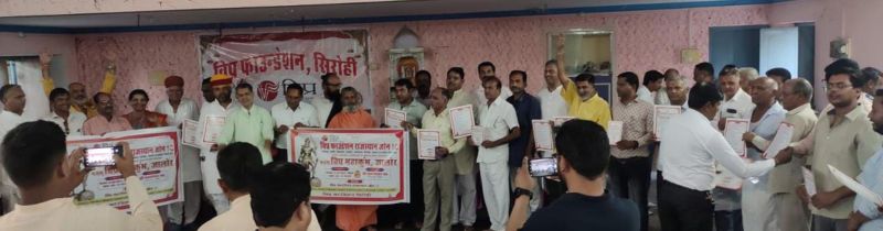 सिरोही. विप्र फाउंडेशन संभाग स्तरीय विप्र महाकुंभ के निमंत्रण पत्र एवं बैनर का विमोचन करते पदाधिकारी व मौजूद अन्य।