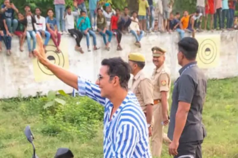 इसके बाद अक्षय कुमार चिर-परचित अंदाज में हाथ लहराकर अभिवादन किया। अक्षय कुमार यहीं तक सीमित नहीं रहे,शूटिंग में प्रयोग होने वाली बाइक पर सवार होकर अपने प्रशंसकों के काफी नजदीक पहुंचकर मुस्कुराहट के साथ हाथ हिलाकर पुनः अभिवादन किया।