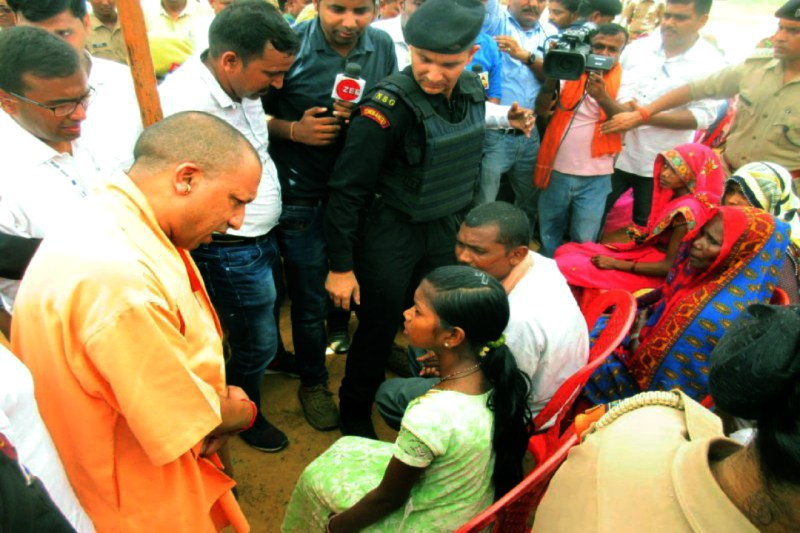 सोनभद्र नरसंहार के पीड़ितों से मिले योगी आदित्यनाथ