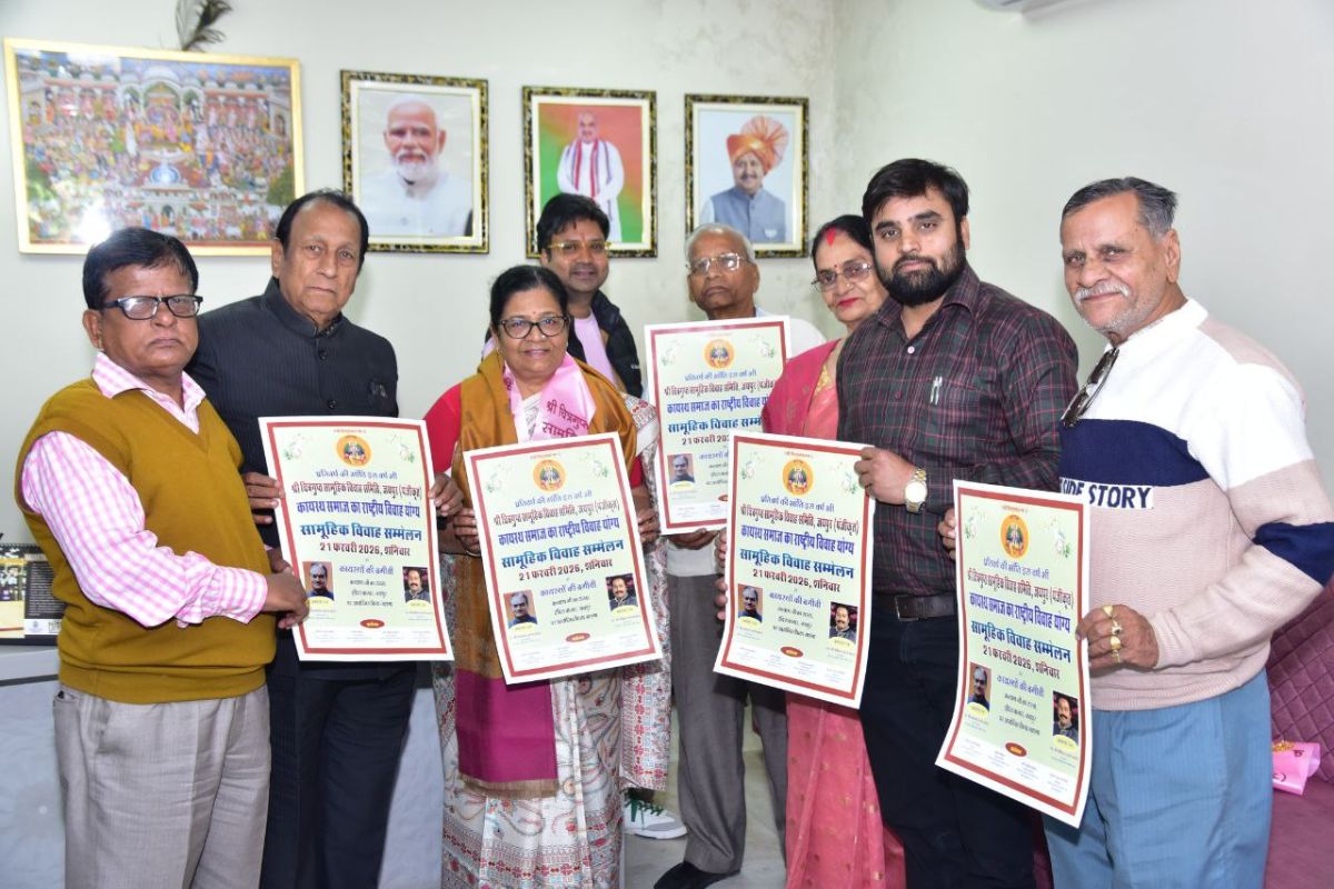 जयपुर। श्री चित्रगुप्त सामूहिक विवाह समिति, जयपुर की ओर से कायस्थ समाज का 23वां विशाल सामूहिक विवाह समारोह 21 फरवरी 2026 को कायस्थों की बगीची, कल्याणजी का रास्ता, इंदिरा बाजार के पास आयोजित किया जाएगा। समारोह की मुख्य अतिथि मंजू शर्मा होंगी।