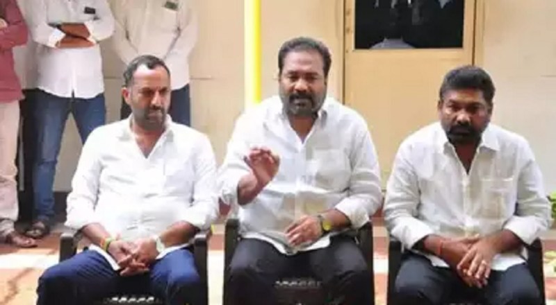 नेल्लोर ग्रामीण पूर्व विधायक कोटामरेड्डी श्रीधर रेड्डी संवाददाता सम्मेलन को संबोधित हुए।