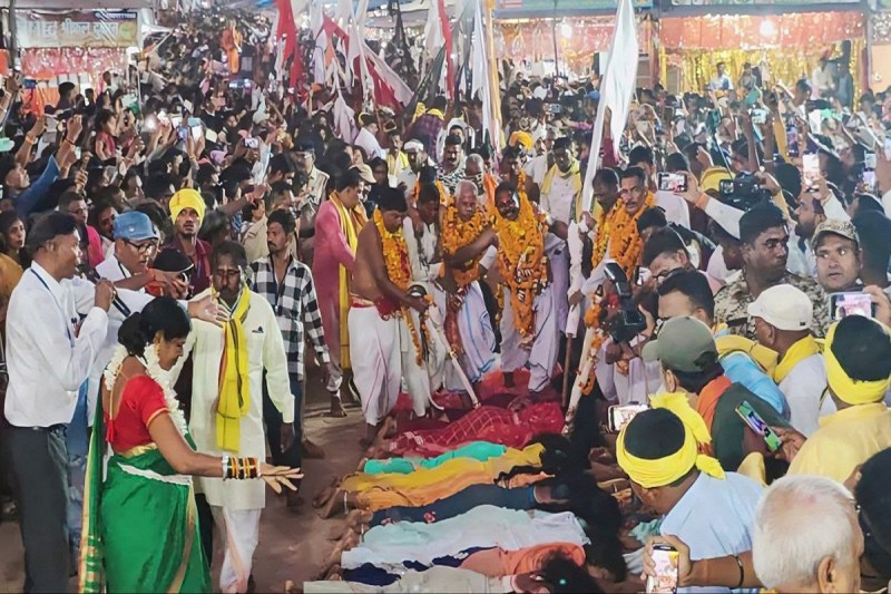 Chhattisgarh: मड़ई देखने धमतरी सहित अन्य प्रदेश से भी श्रद्धालु बड़ी संख्या में शामिल हुए। मड़ई में सिरहा, बैगाओं ने सर्वप्रथम मां अंगारमोती माता का दर्शन किया। पश्चात मंदिर परिसर का सात बार परिक्रमा कर गांव बनाने की रस्म अदा की गई। इसके बाद प्रांगण में संतान प्राप्ति की कामना लेकर पहुंची करीब 100 से अधिक महिलाओं ने बाल खुले कर हाथ में नींबू और नारियल लेकर औधें मुंह जमीन में लेटी।