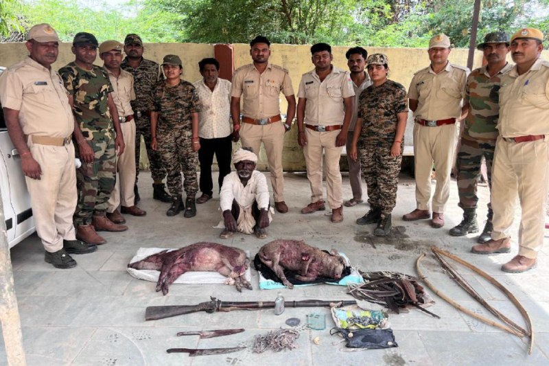 बारां जिले के शेरगढ़ अभयारण्य में वन विभाग की टीम ने कार्रवाई करते हुए एक शिकारी को गिरफ्तार किया है, जबकि दो अन्य फरार हो गए। घटनास्थल से दो जंगली सूअर मृत अवस्था में मिले। टीम ने मौके से शिकार में उपयोग ली गई सामग्री जब्त की और पकड़े गए आरोपी से पूछताछ जारी है। शेरगढ़ अभयारण्य वन विभाग की वन्यजीव शाखा कोटा के अंतर्गत आता है।