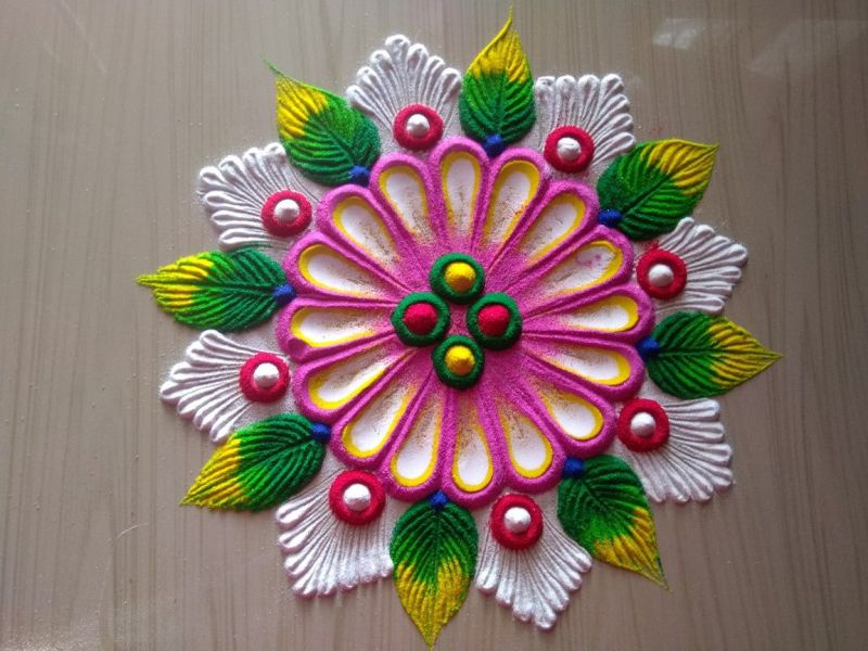 इस रंगोली को भी सबसे ज्यादा पसंद किया जाता है। फूल और पत्तियों से बनी यह रंगोली हर इवेंट को खास बना देती हैं। फूलों की रंगोली को आप अलग-अलग डिजाइन में बना सकती हैं। इसे बनाने में भी बहुत कम समय लगता है। इसमें अलग-अलग फूल लें।