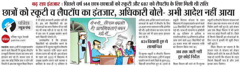 शहडोल. कक्षा 12वीं में उत्कृष्ट प्रदर्शन करने वाले विद्यार्थी नि:शुल्क लैपटॉप व स्कूटी वितरण योजना का लाभ पाने इंतजार कर रहे हैं। शासन स्तर से अब तक कोई निर्देश प्राप्त न होने की स्थिति में अब तक स्कूल शिक्षा विभाग ने भी कोई जानकारी अपडेट नहीं की है। इस वर्ष विद्यार्थियों को इन योजनाओं का लाभ मिलेगा भी या नहीं यह भी स्पष्ट नहीं हो पा रहा है। ऐसे में इस सत्र में उत्कृष्ट प्रदर्शन करने वाले विद्यार्थी परेशान हैं। उल्लेखनीय है कि होनहार विद्यार्थियों को प्रोत्साहित करने के उद्देश्य से नि:शुल्क स्कूटी व लैपटॉप के लिए सहायता राशि प्रदान करने योजना प्रारंभ की गई थी। इस योजना के तहत वर्ष 2023 में विद्यालय में उत्कृष्ट प्रदर्शन करने वाले बालक व बालिका के साथ ही 75 प्रतिशत से अधिक अंक अर्जित करने वाले छात्र-छात्राओं के खाते में लैपटॉप के लिए 25 हजार रुपए सहायता राशि अंतरित की थी। इसी योजना का लाभ पाने के लिए इस वर्ष भी छात्र-छात्रा इंतजार कर रहे हैं।