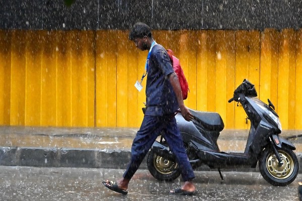 बेंगलूरु में एक युवा बारिश की परवाह न करते हुए अपने गंतव्य की ओर जाता हुआ। फोटो— विजय कुमार