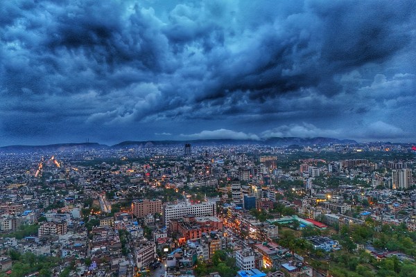 जयपुर में आसमां में काली घटा छाने से बना शहर का विहंगम दृश्य। फोटो— दिनेश डाबी