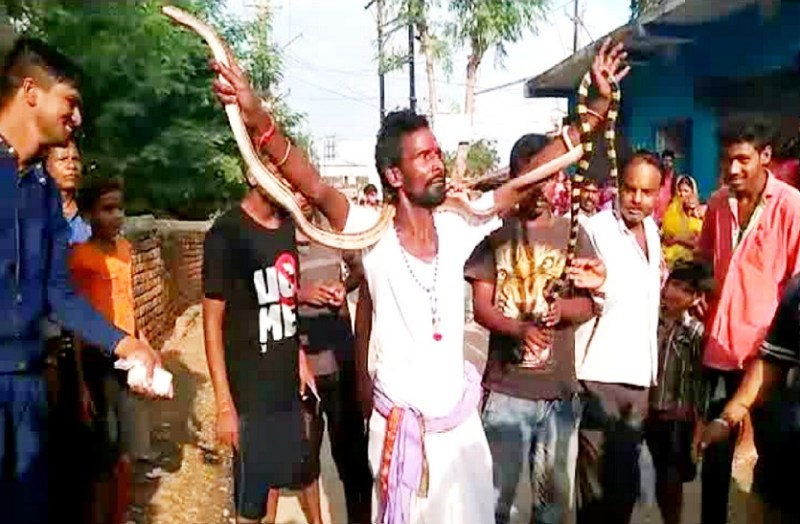 भोले शंकर के भक्त जिन्हें पंच परगनिया क्षेत्रों में भोक्ता कहा जाता है. श्रद्धा, भक्ति और मान्यताओं के अनुसार सर्प देवी की पूजा के लिए भोक्ता पूरे 9 दिन का उपवास करते हैं फिर पूर्णाहूति के दिन सुबह से गले में जहरीले सांपो की माला पहनते हुए उनसे ठिठोली करते भोक्ता शिव मंदिर बु्ढा महादेव की तरफ आगे बढ़ते है। शिव भक्त और भोक्ताओं की इस टोली में हर प्रजाति के सांप होते हैं।