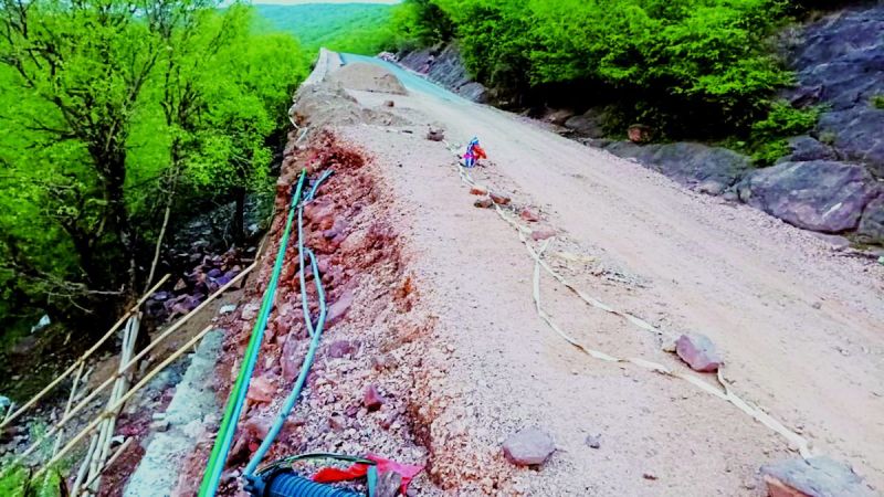 देई. स्टेट हाईवे 34 देई खटकड सडक मार्ग के बीच बांसखोळ के जंगल मे टूटी सुरक्षा दीवार।