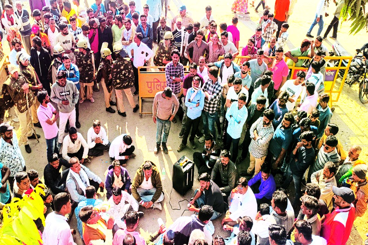 भीम. कस्बे के पड़ाव इलाके में बैंक ऑफ बड़ौदा के बाहर वाहन को साइड देने के मामले को लेकर हुई मारपीट की वारदात में पुलिस की ओर से फरियादियों के साथ सही व्यवहार नहीं करते हुए गैर जिम्मेदाराना रवैया अपनाने के आरोपों को लेकर आक्रोशित भाजपा कार्यकर्ताओं और सैकड़ों की संख्या में ग्रामीणों ने शुक्रवार को सुबह से ही भीम पुलिस थाने का कई घंटे तक घेराव करते हुए विरोध प्रदर्शन किया। ग्रामीण आरोपियों की धरपकड़ कर कस्बे की शांति व्यवस्था बहाल करने तथा दोषी पुलिसकर्मियों को लाइन हाजिर करने की मांग पर अड़ गए और डाक बंगला परिसर में भी जमा हो गए। राजमार्ग पर भी बड़ी संख्या में लोगों के जमा होने से माहौल गर्मा गया, जिसके चलते आला पुलिस अधिकारियों के साथ ही भारी जाप्ता लगा दिए जाने से कस्बा छावनी बन गया। बाद में अधिकारियों की समझाइश से मामला शांत हुआ।