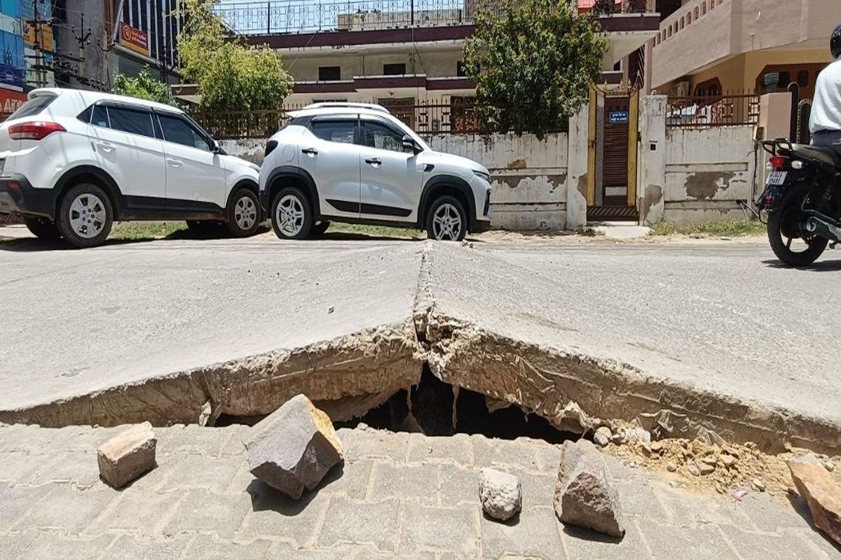 अलवर शहर की स्कीम नंबर दो कॉलोनी में दोपहर अचानक तेज धमाके के साथ सीसी सड़क फट गई और करीब दो फीट तक ऊंची उठ गई। धमाके जैसी आवाज सुनते ही इलाके में हड़कंप मच गया और लोग डर के मारे अपने घरों से बाहर निकल आए।