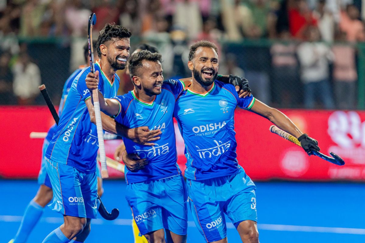 मलेशिया के खिलाफ जीत का जश्न मनाते हुए भारतीय हॉकी खिलाड़ी (फोटो- Hockey India)