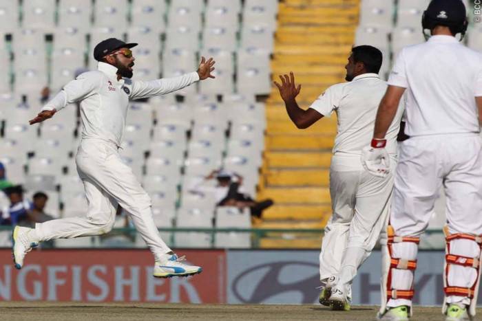 इंग्लैंड को दूसरी पारी में अश्विन ने मेहमान टीम को तीन झटके दे दिये। अश्विन ने इंग्लैंड के कप्तान एलेस्टेयर कुक (12) को एक बेहतरीन गेंद पर बोल्ड किया और फिर मोइन अली (पांच) को अपनी फ्लाइट से छकाते हुये जयंत यादव को कैच देने के लिये मजबूर कर दिया। तीसरा विकेट जॉनी बेयरस्टो(15) का गिरा जिन्होंने पहली पारी में 89 रन बनाए थे।