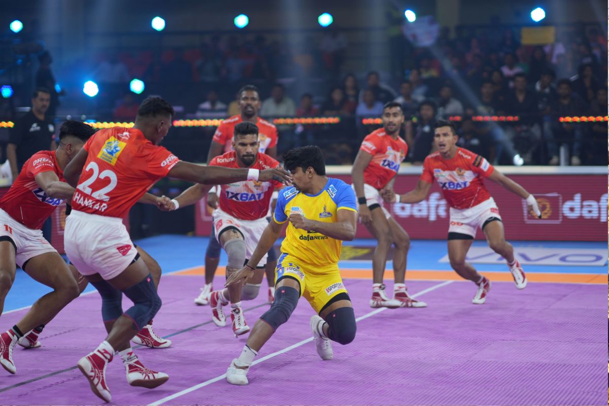 तेलुगू टाइटंस के लिए रेड करते हुए पवन सहरावत (Photo- IANS)